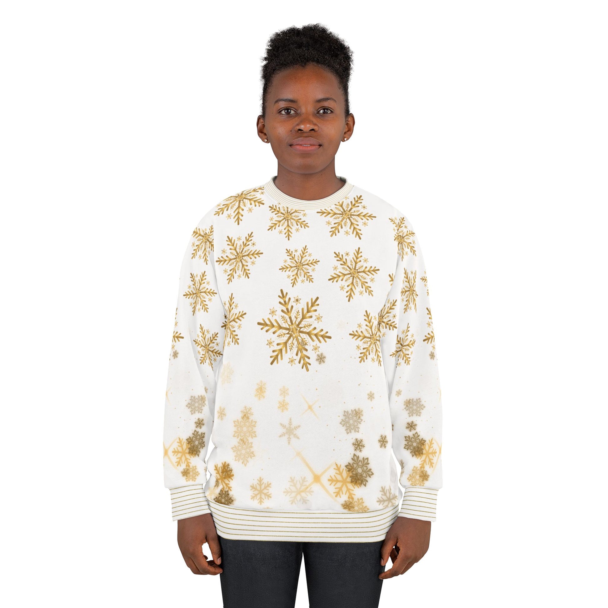 Golden Snowflakes AOP – Premium Holiday Crewneck Sweatshirt | Invaluable Minutia