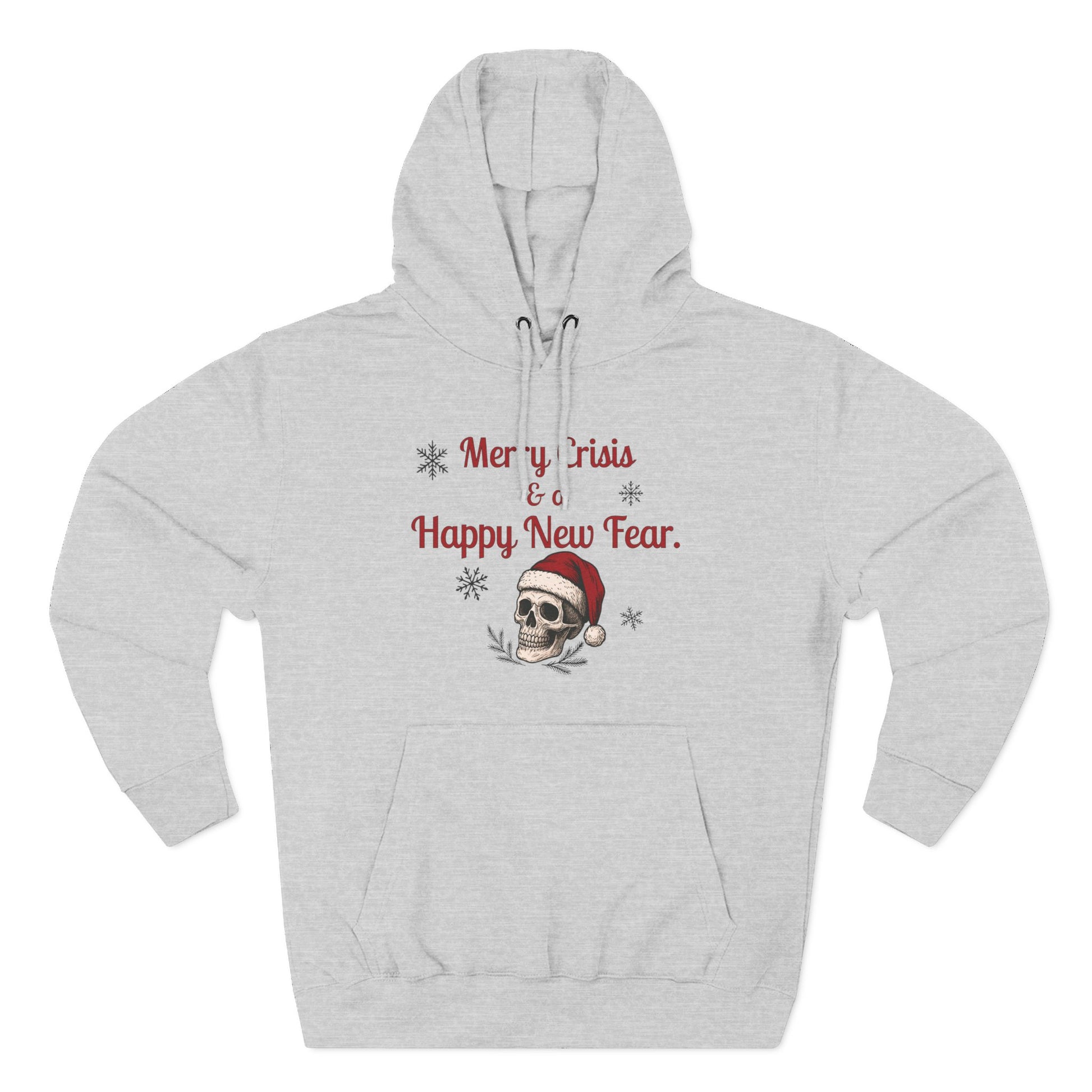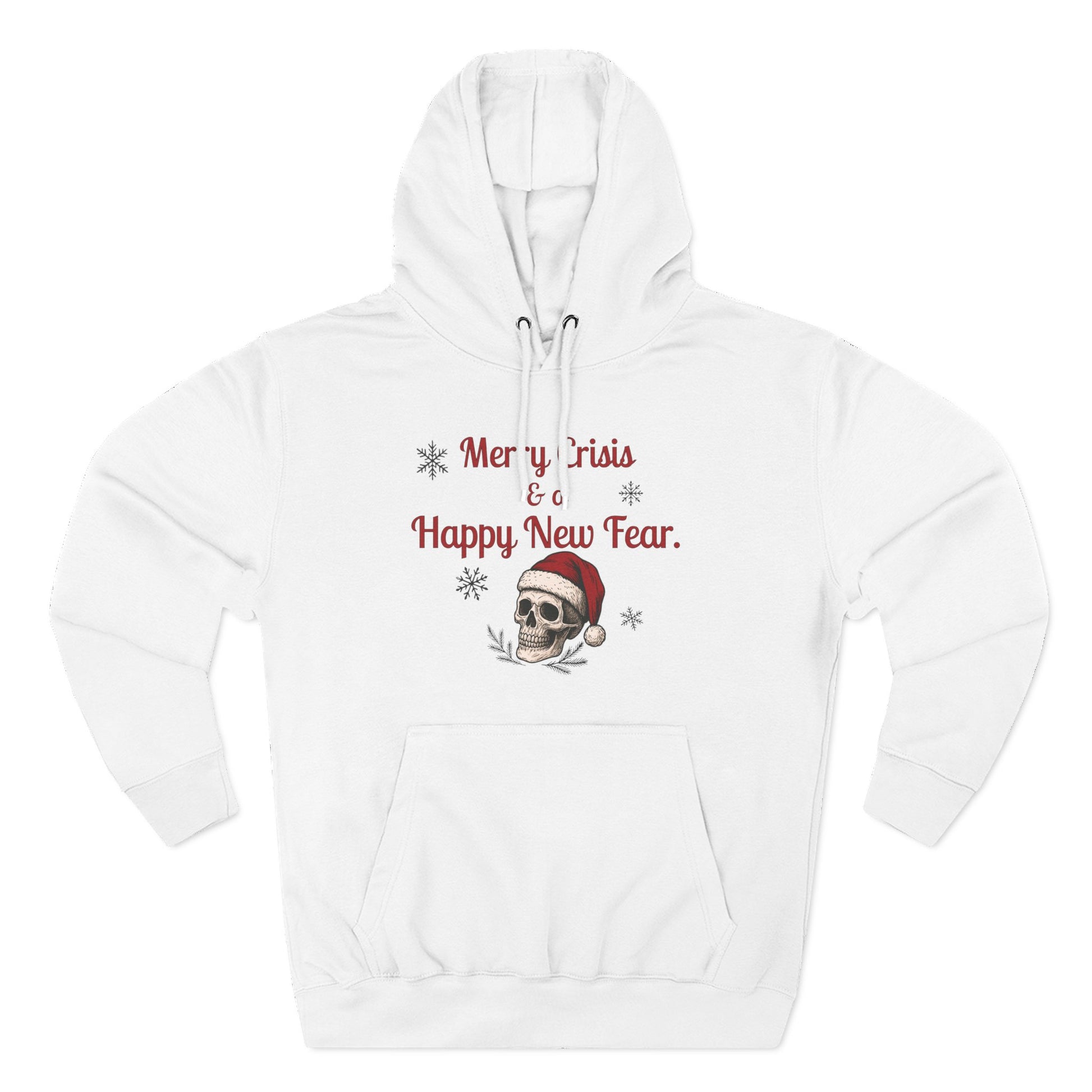 Merry Crisis & a Happy New Fear Hoodie — Gothic Christmas Skull, Premium Lane Seven Fleece (S–2XL)