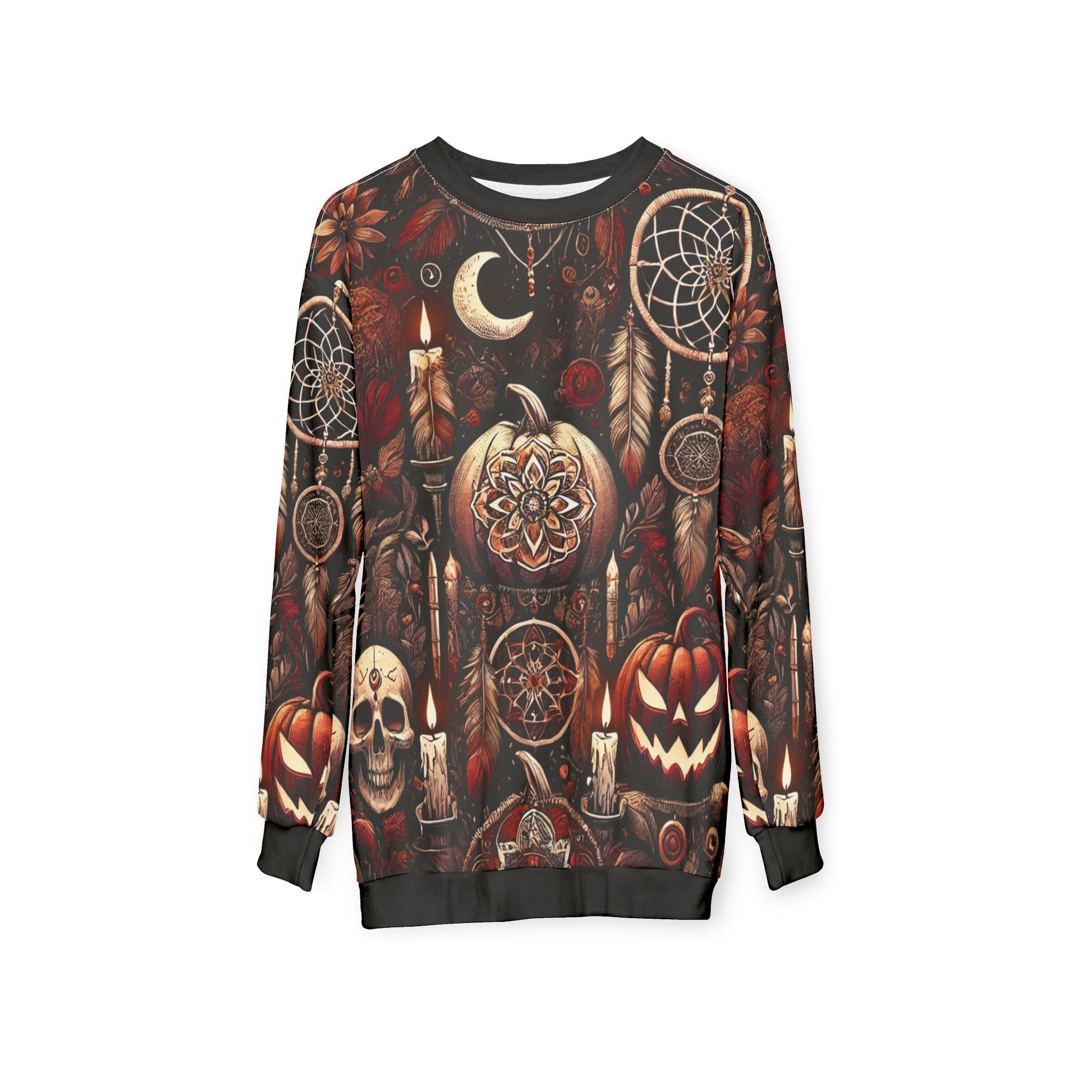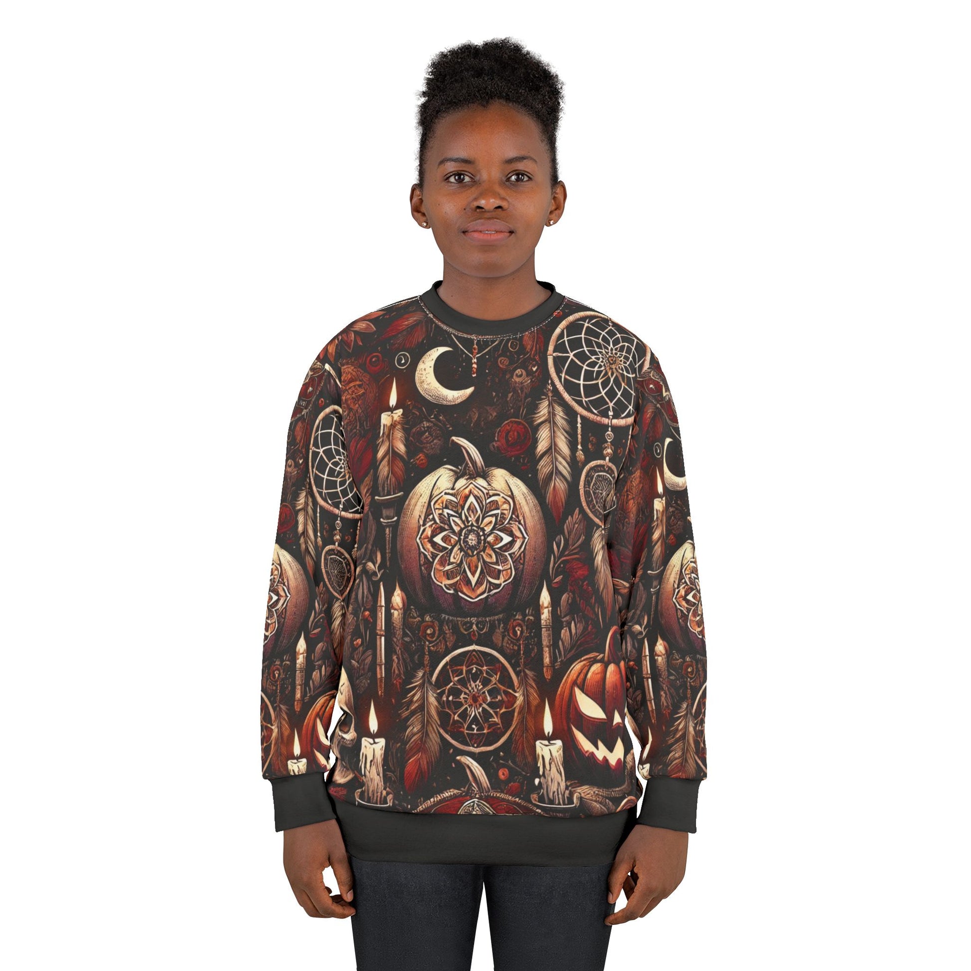 Midnight Samhain AOP Unisex Sweatshirt | Gothic Halloween Pumpkins, Candles & Dreamcatchers | Dark Fall Aesthetic | Free Worldwide Shipping