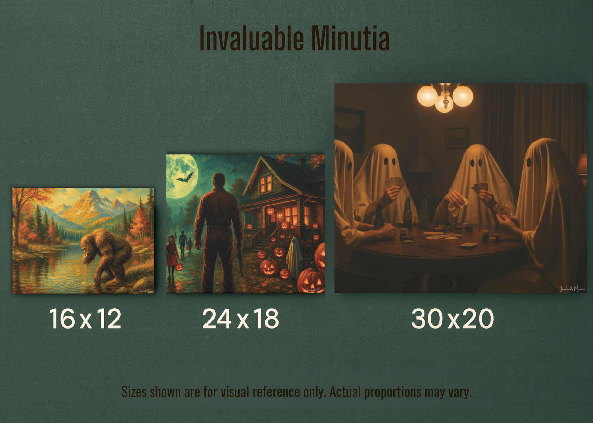 Bigfoot River Canvas Wall Art – Autumn Mountain Landscape | Vintage Cryptid Nature Print | Invaluable Minutia — Canvas. Built for everyday joy and weird little flexes. Expect premium print accuracy and a polished, boutique finish.