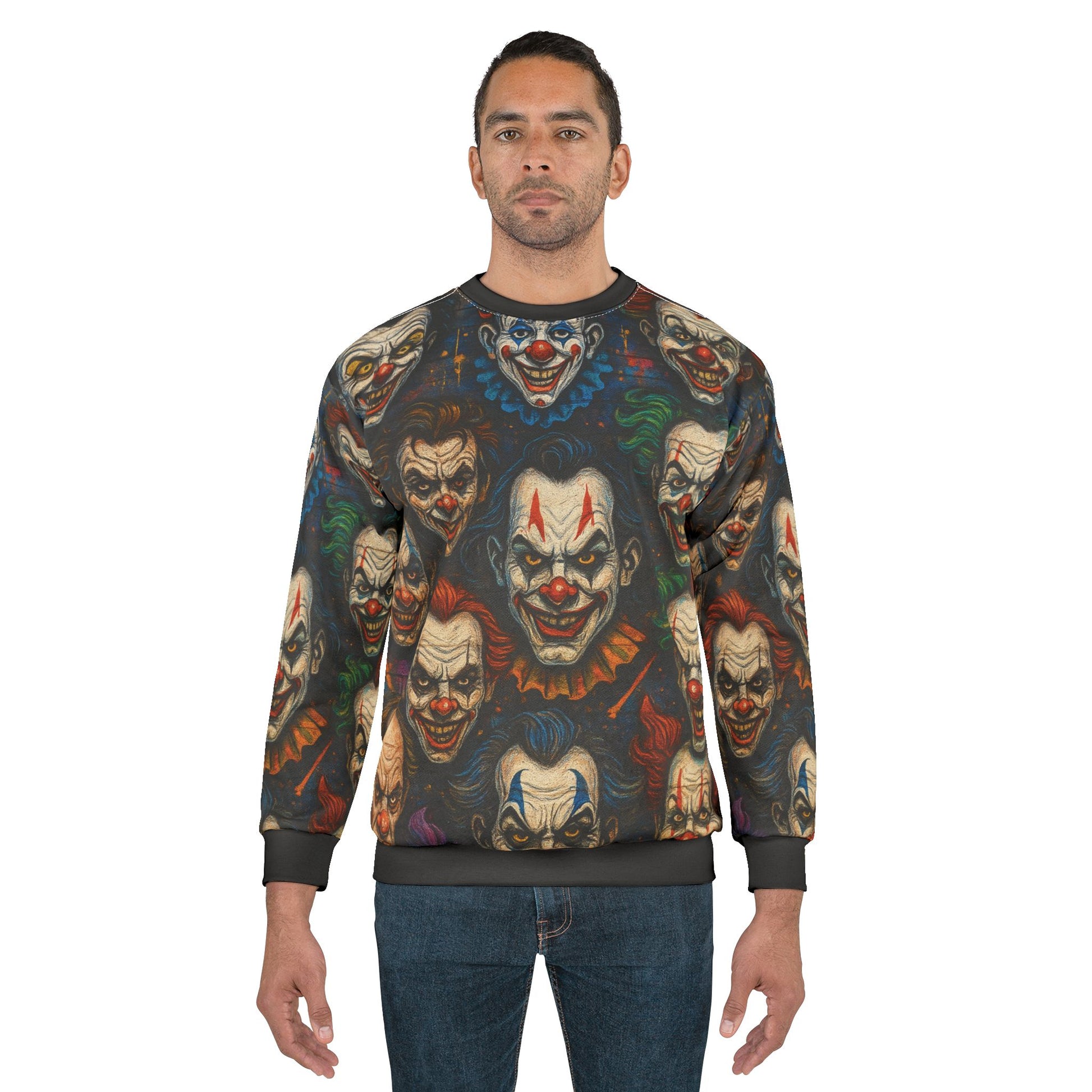 Carnival of Nightmares AOP Unisex Sweatshirt – Creepy Clown Faces | Spooky Season Horror Crewneck | Free Worldwide Shipping