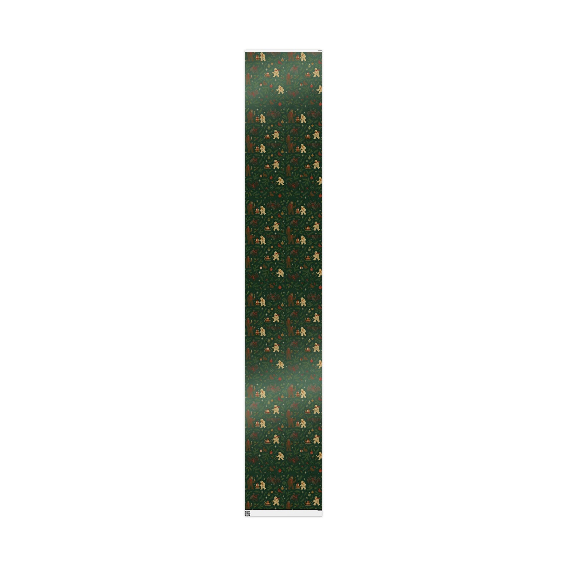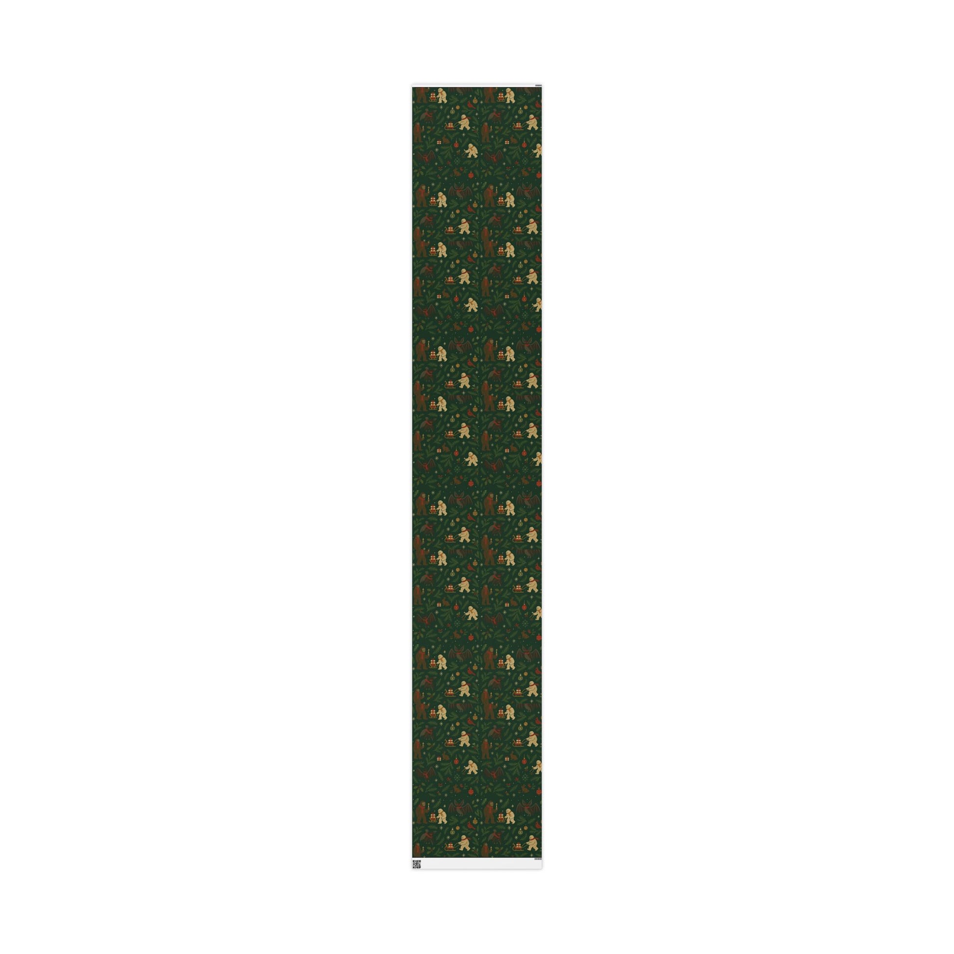 Cryptid Christmas Parade — Luxury Designer Wrapping Paper (30″ width • three lengths) — Bigfoot, Mothman, and Yeti in a candlelit forest. Cozy, whimsical, and endlessly giftable.