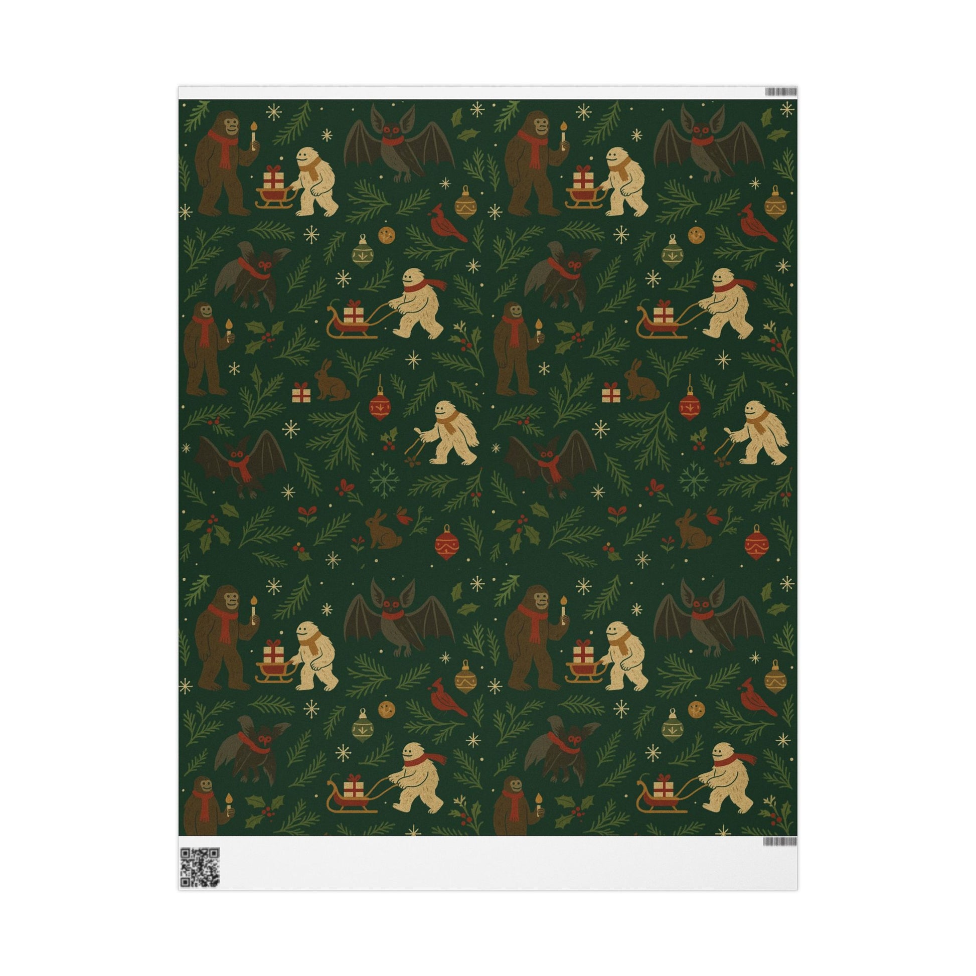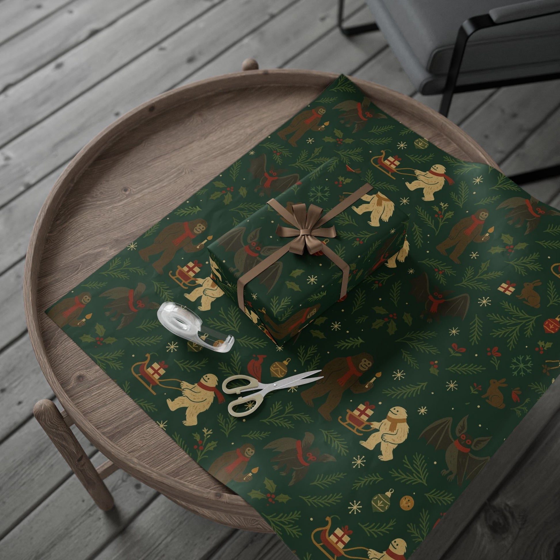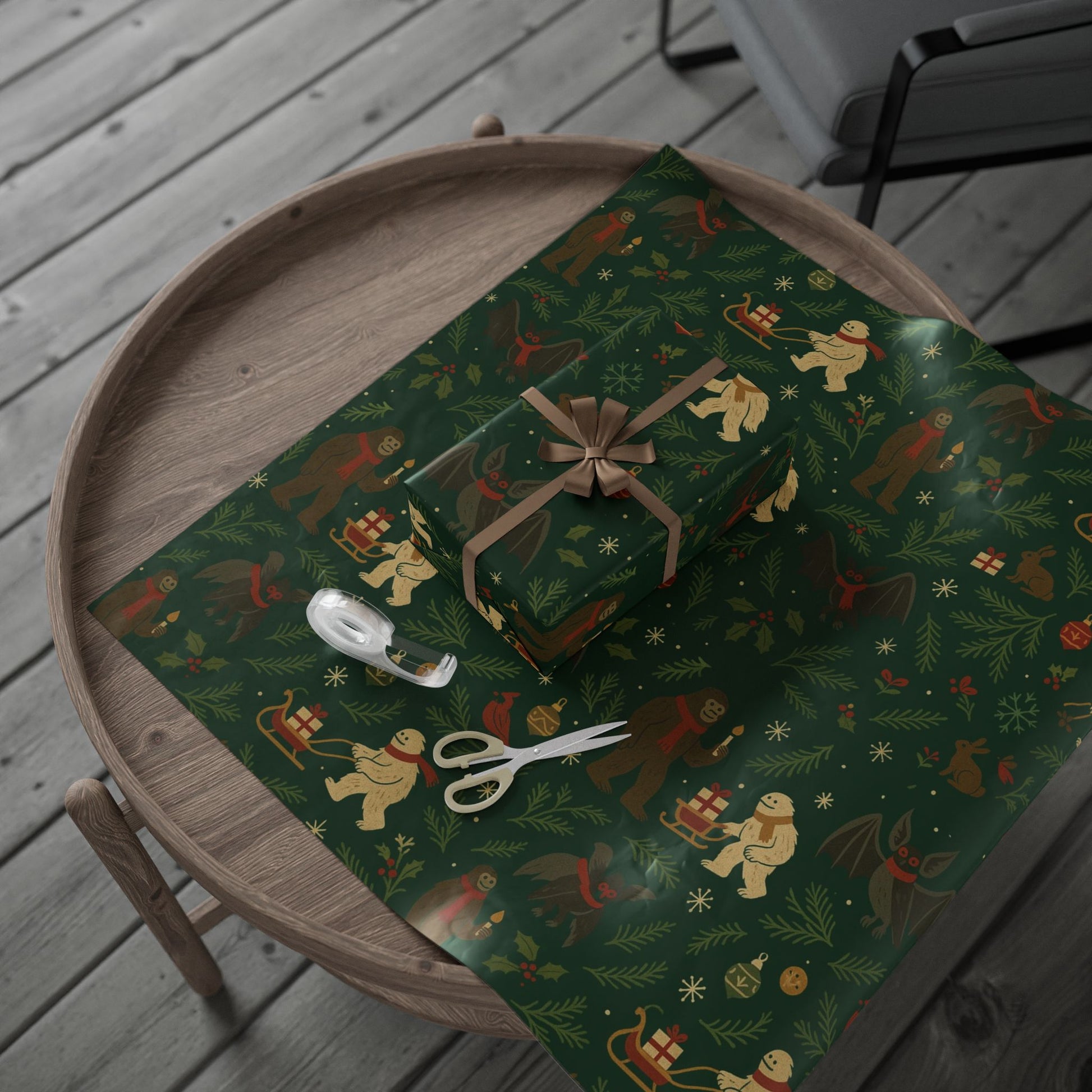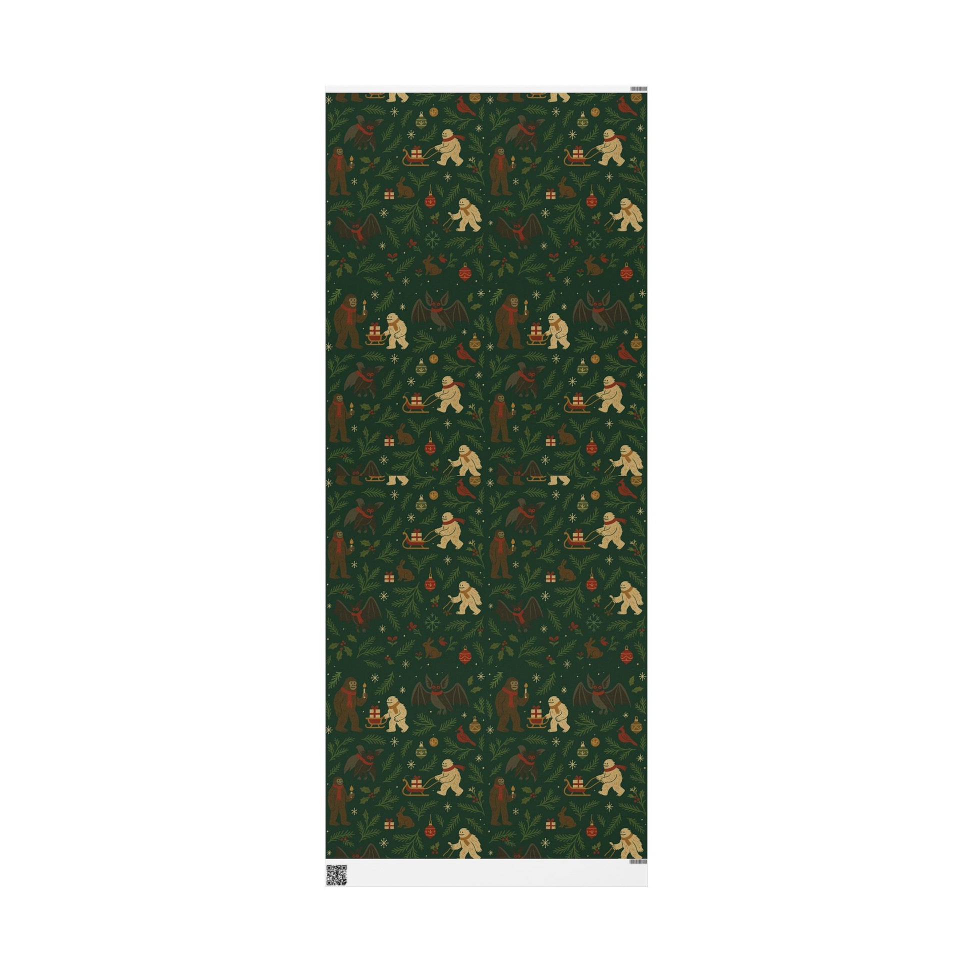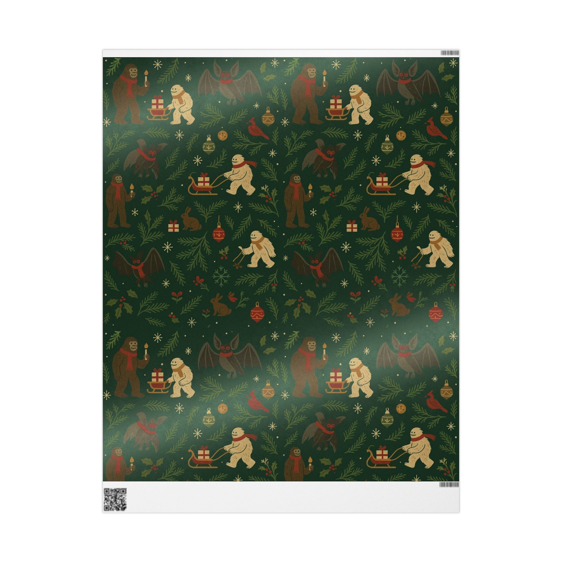 Cryptid Christmas Parade – Luxury Holiday Wrapping Paper, Folk-Art Bigfoot & Mothman Gift Wrap, 30" Roll (Matte/Gloss)