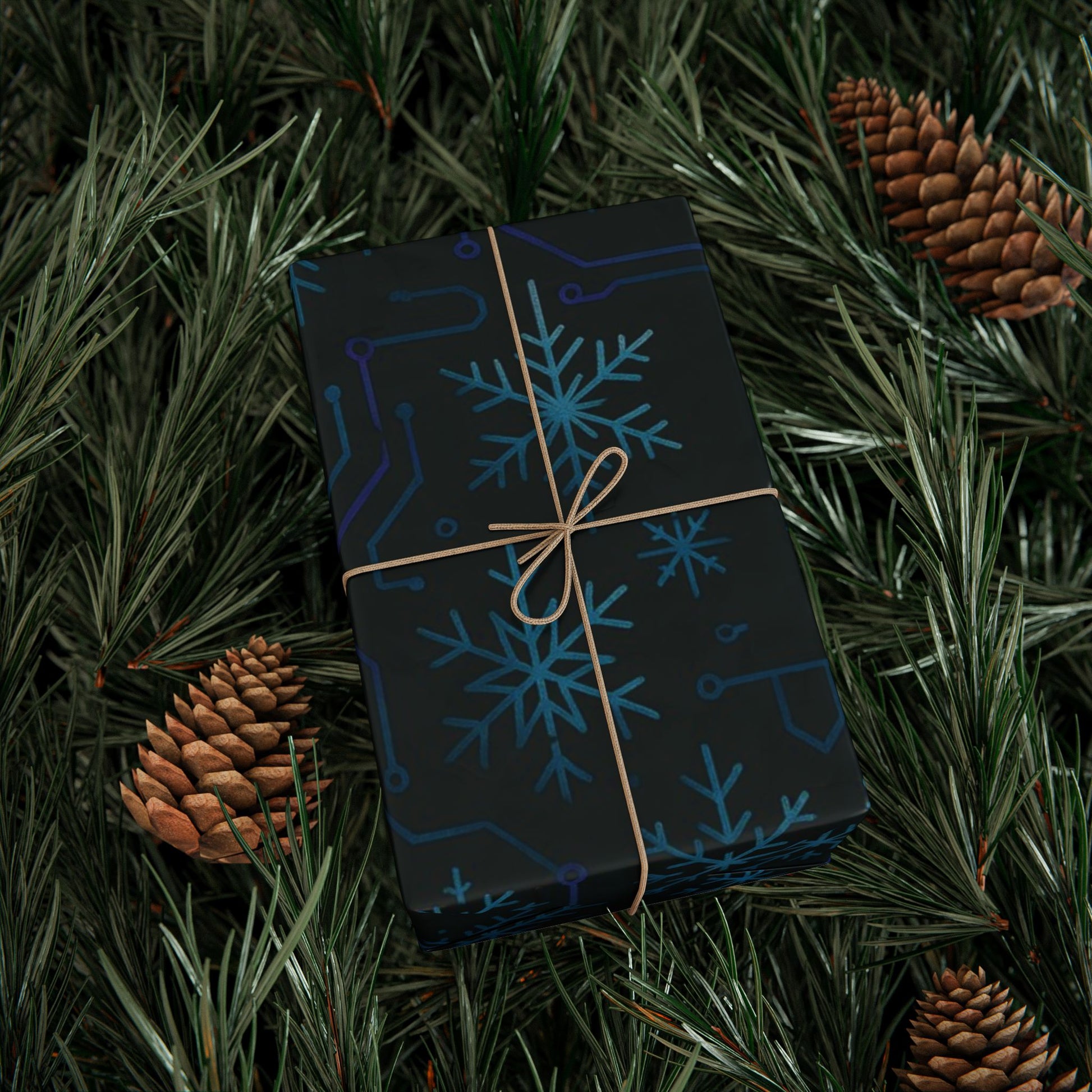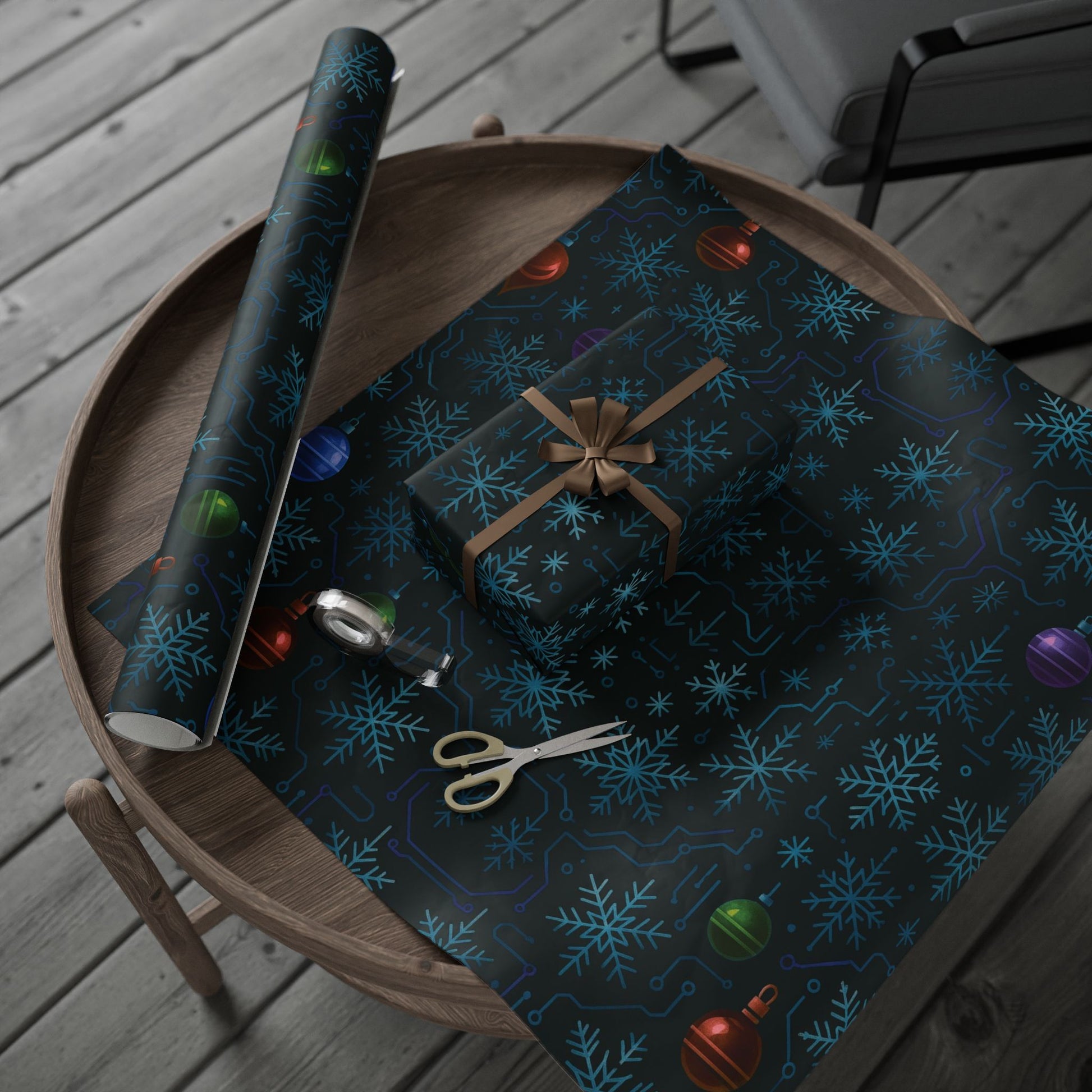 Cyber Yule Circuit – Luxury Christmas Wrapping Paper, Seamless Designer Gift Wrap, 30" Roll (Matte/Gloss)