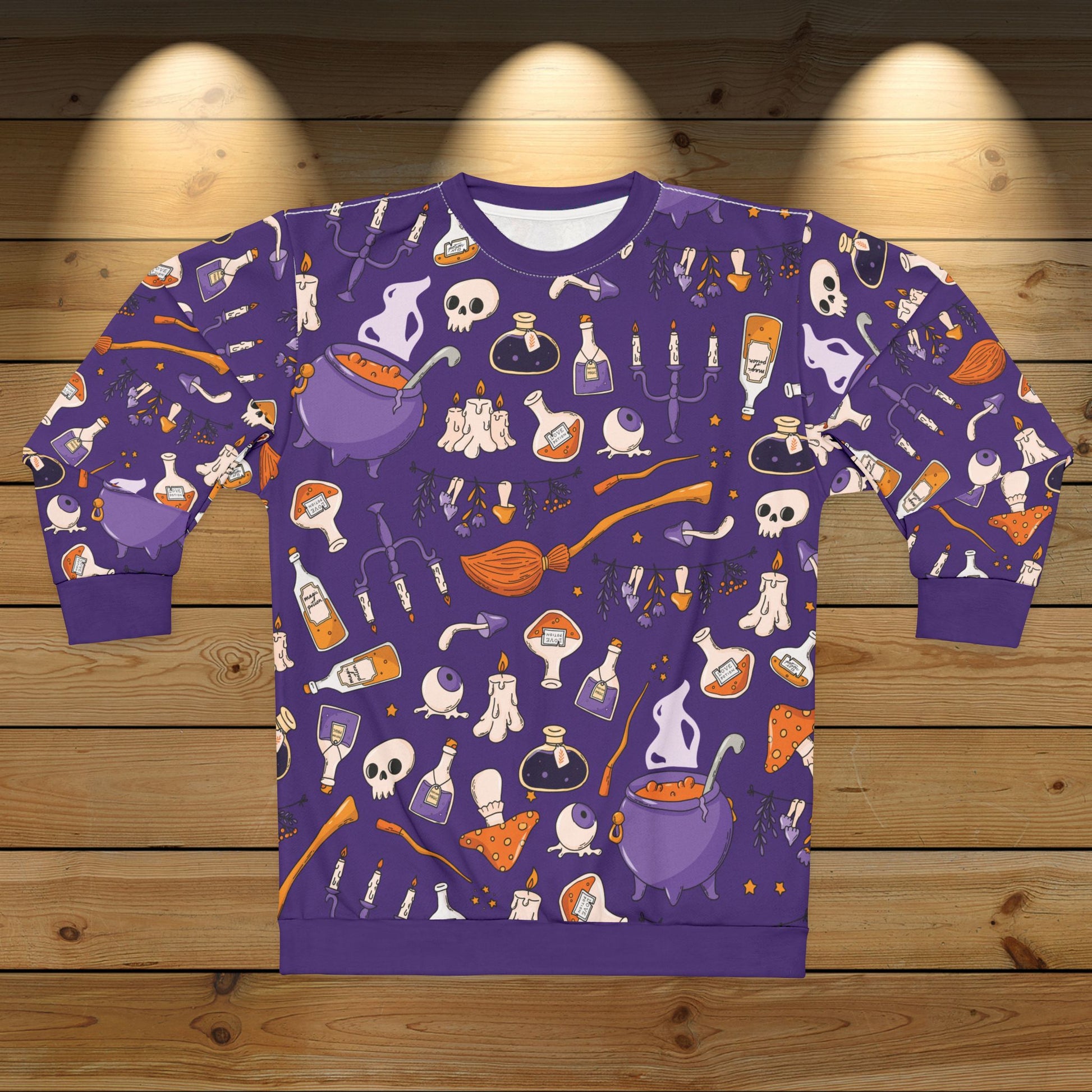 Witchy Potions AOP Unisex Sweatshirt – Spooky Season Purple | Cozy Fall Crewneck | Free Worldwide Shipping