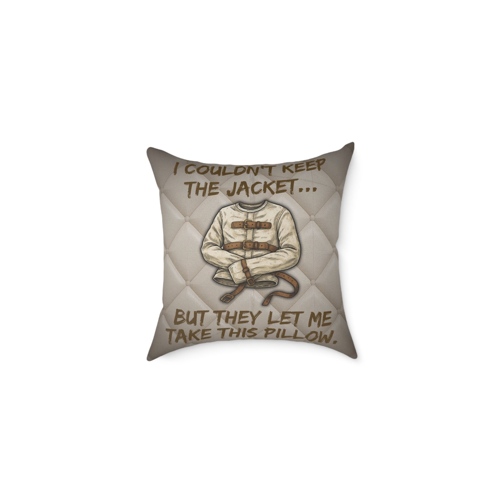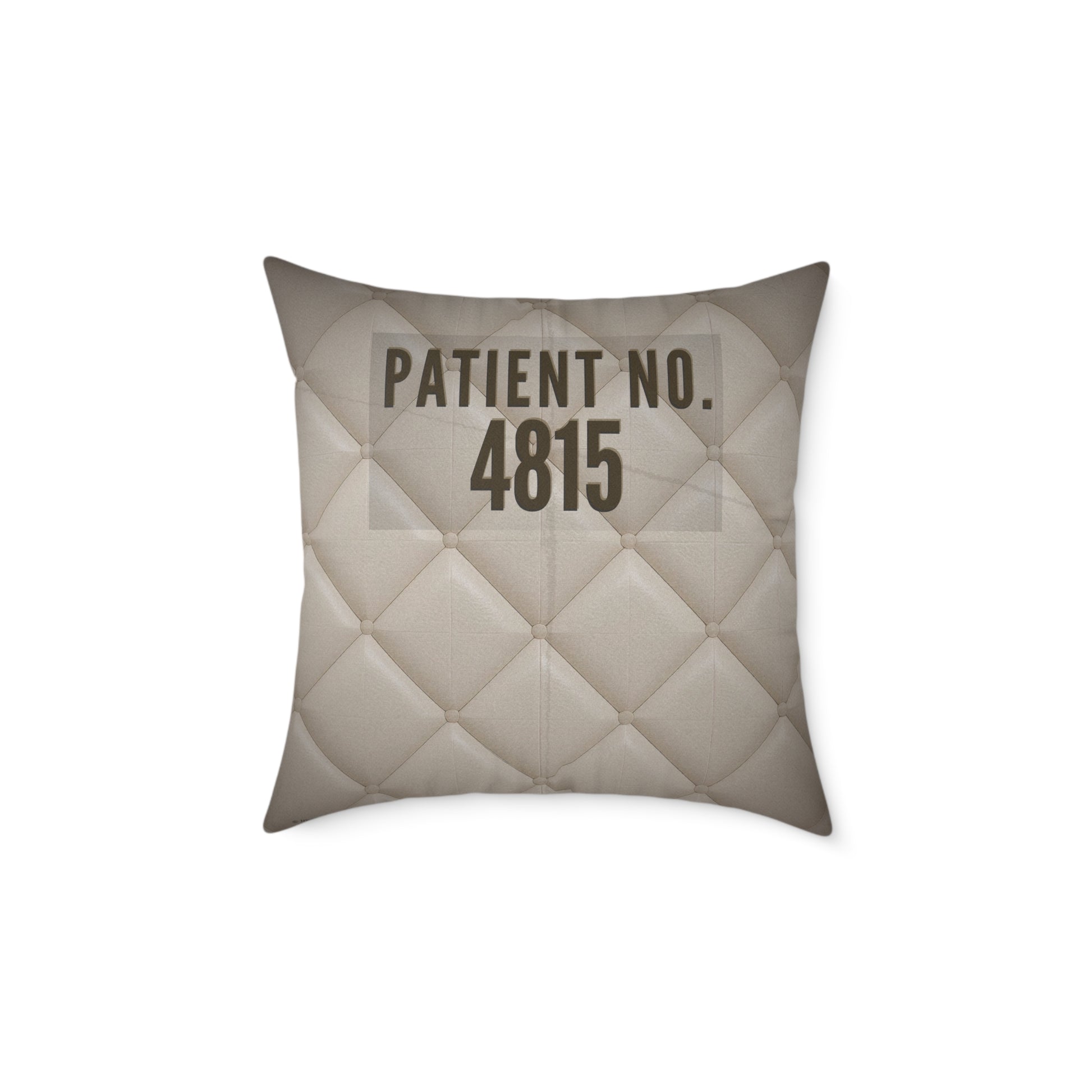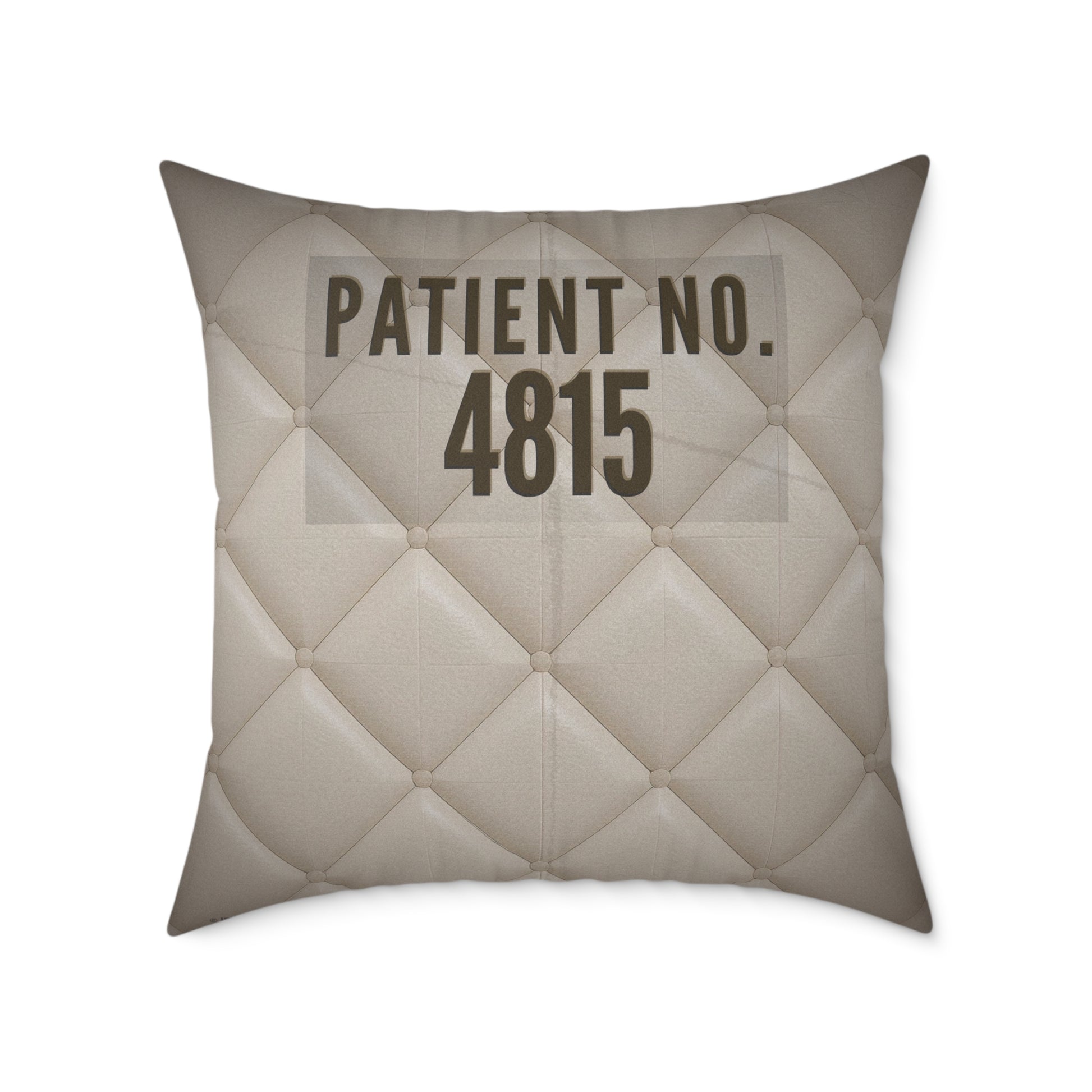 Asylum Humor Poly Canvas Throw Pillow — “I Couldn’t Keep the Jacket…” | Patient No. 4815 Back Print