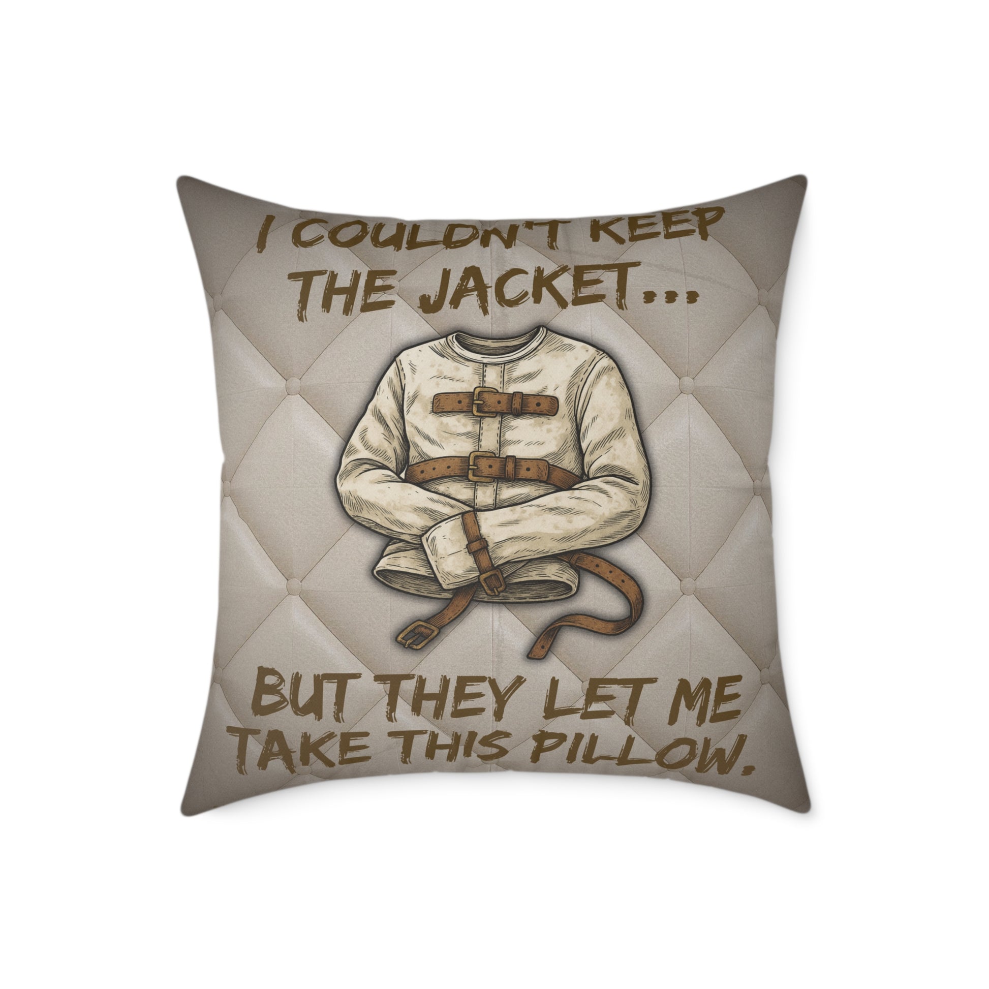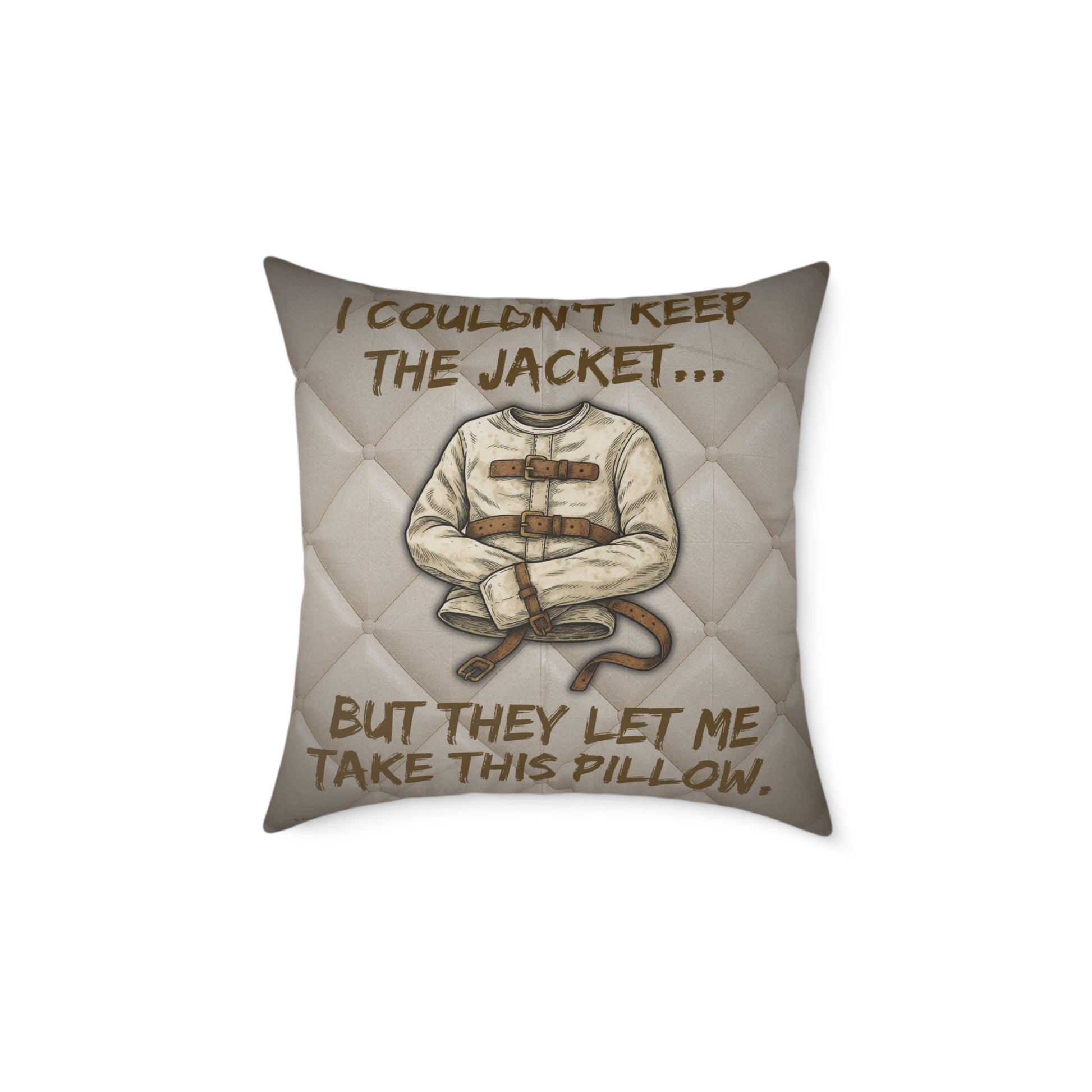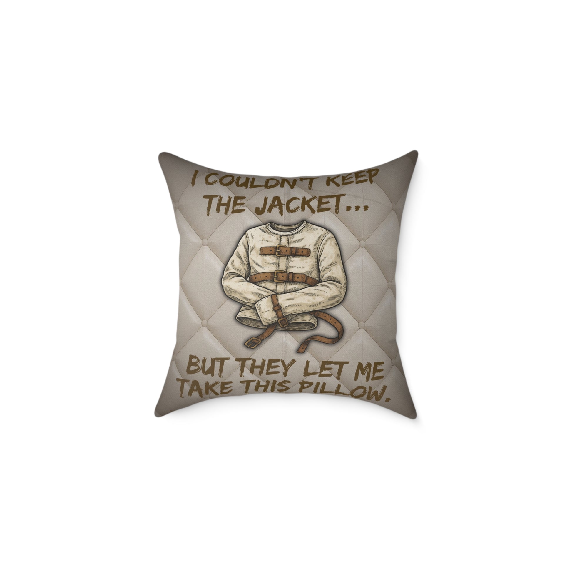 Asylum Humor Poly Canvas Throw Pillow — “I Couldn’t Keep the Jacket…” | Patient No. 4815 Back Print