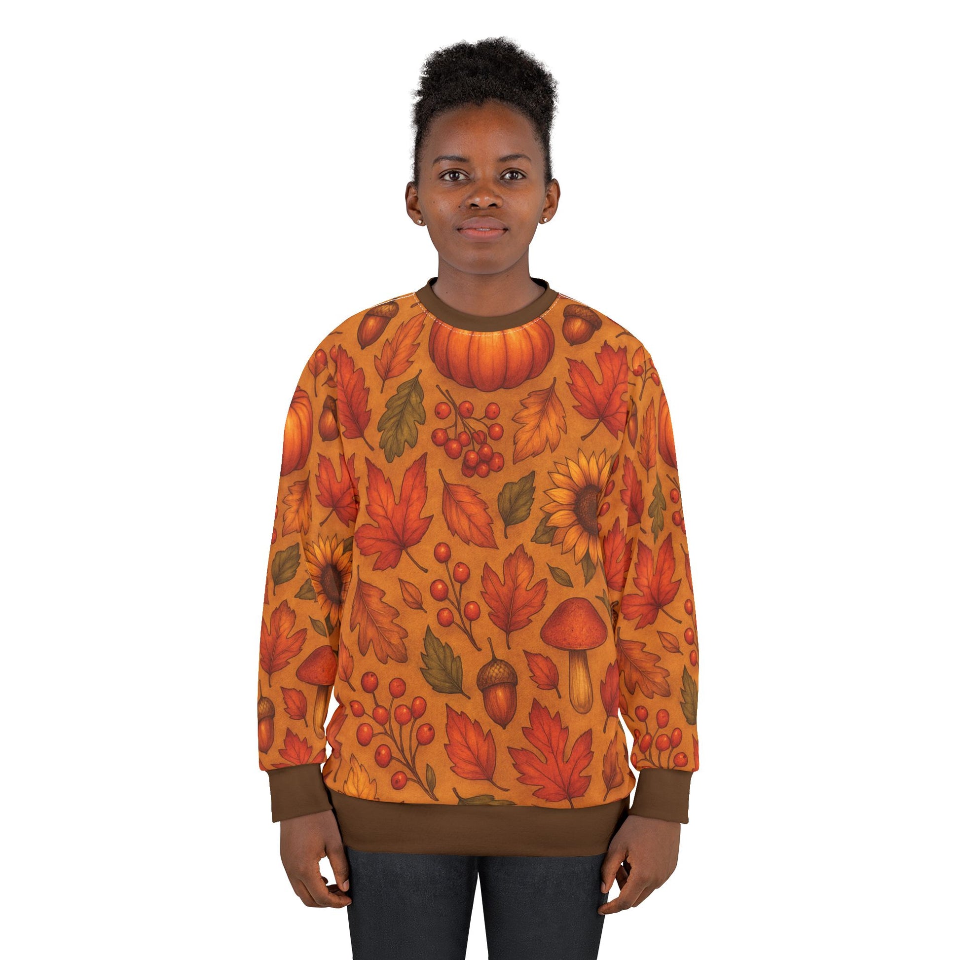 Autumn Harvest AOP Unisex Sweatshirt | Cozy Fall Leaves, Pumpkins & Sunflowers | All-Over Print | Free Worldwide Shipping