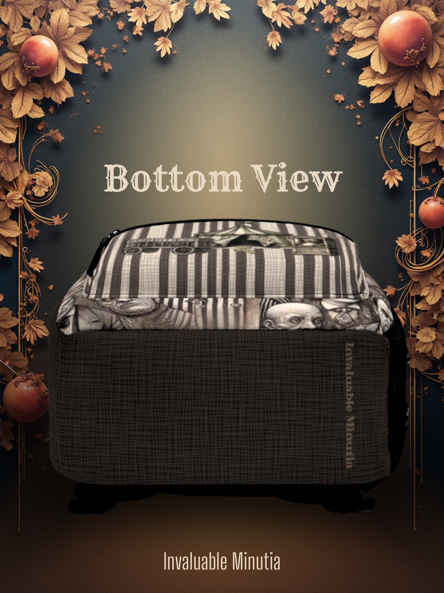 🔊 Varför du kommer att älska den: Kliv fram… om du vågar. Det här är inte en vanlig ryggsäck – det är ett portabelt kuriosakabinett. Från den oroande blicken hos vintageinspirerade "freakshow"-karaktärer till de hypnotiska ränderna som ramar in en spådams bås, är varje centimeter full av detaljer som är avsedda att locka folk (och kanske göra dem lite obekväma).