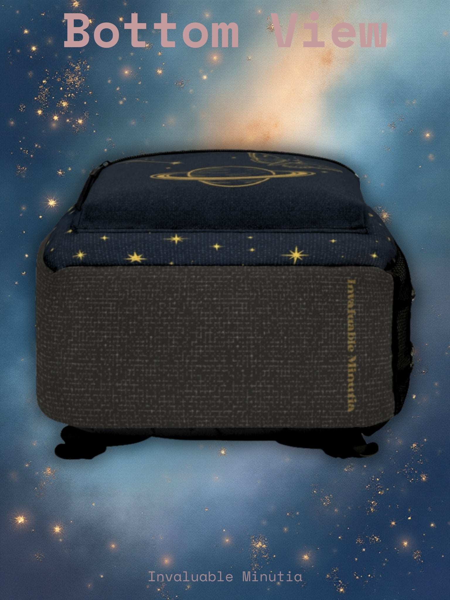 Guldfärgad ryggsäck med himmelska konstellationer – Premium väska för stjärnklar nattastronomi med måne- och Saturnusdesign