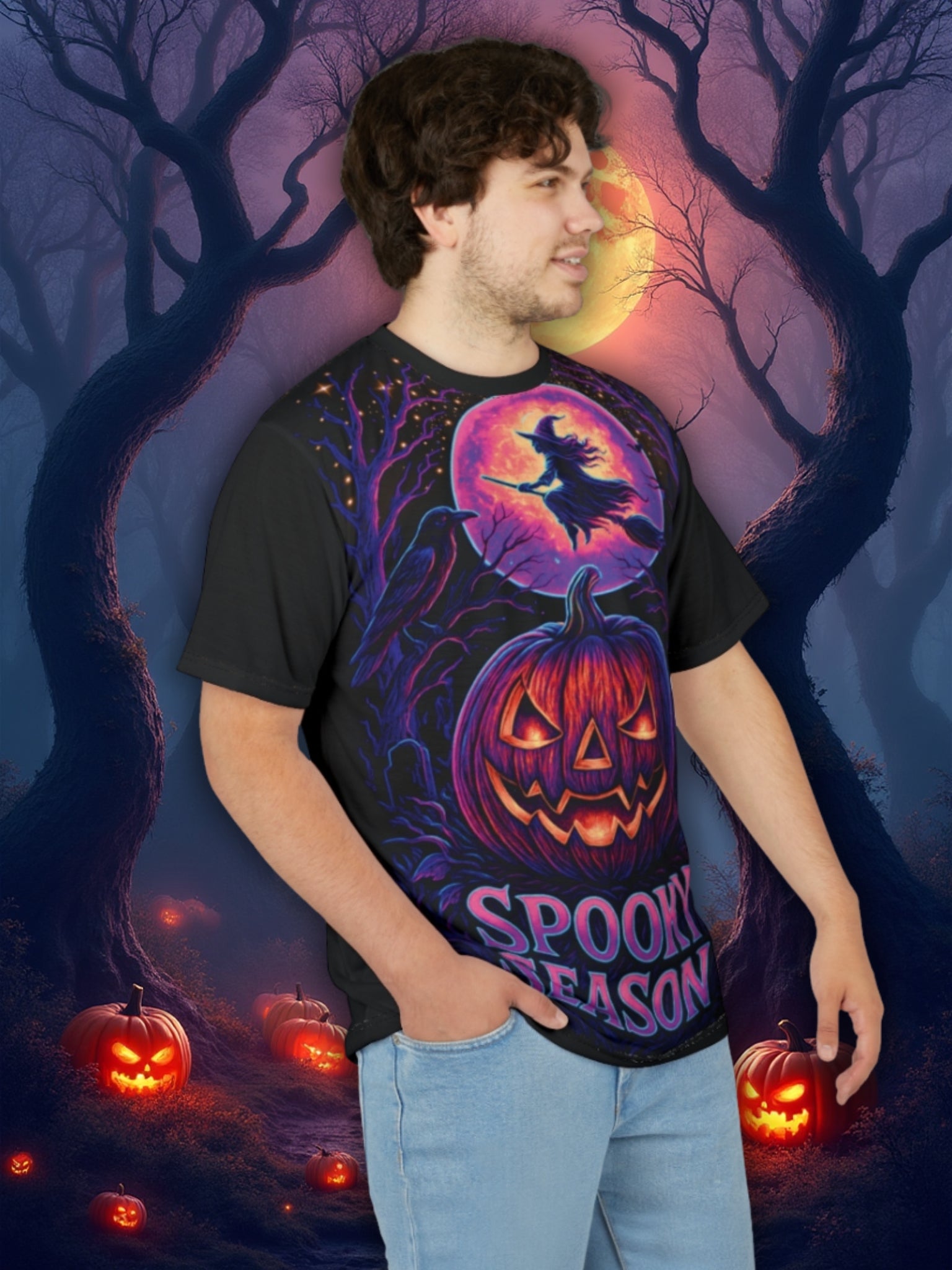 Neon Halloween AOP T-shirt – Spooky Season Pumpalykta & Häxdesign (Heltryck)