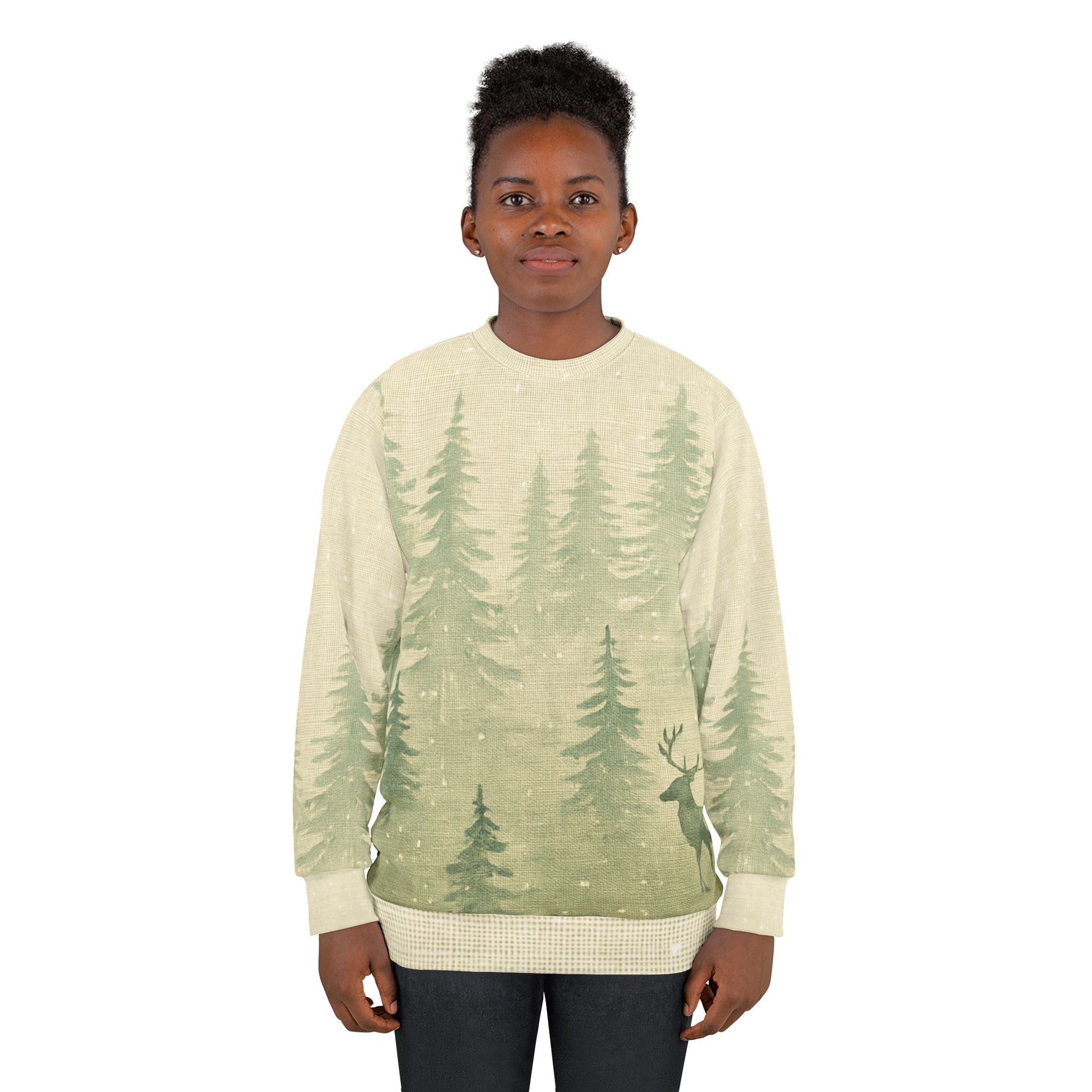 Nordic Woodlands All-Over Print Sweatshirt — Minimalist Winter Forest Scene (MMW Premium AOP Fleece)